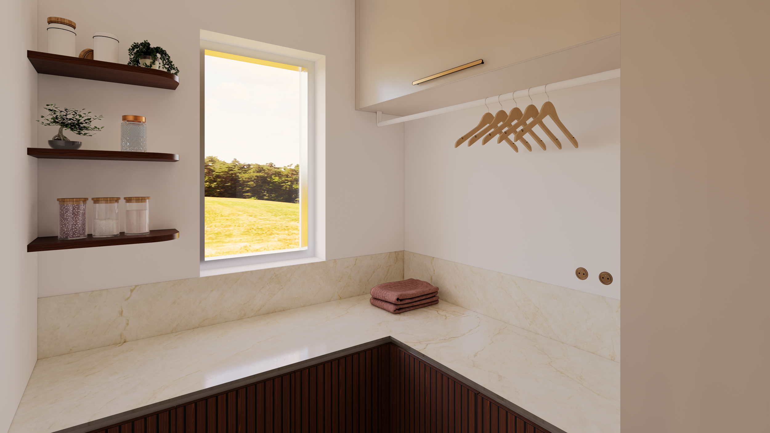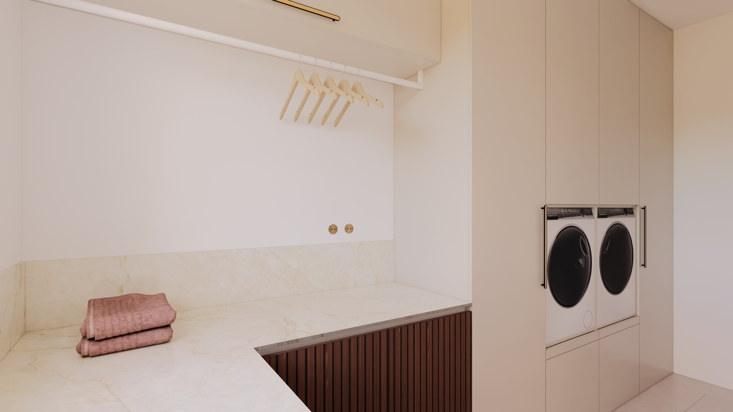 Entre praticité et esthétique, la buanderie combine espaces de rangement et surfaces fonctionnelles pour un quotidien organisé et agréable.